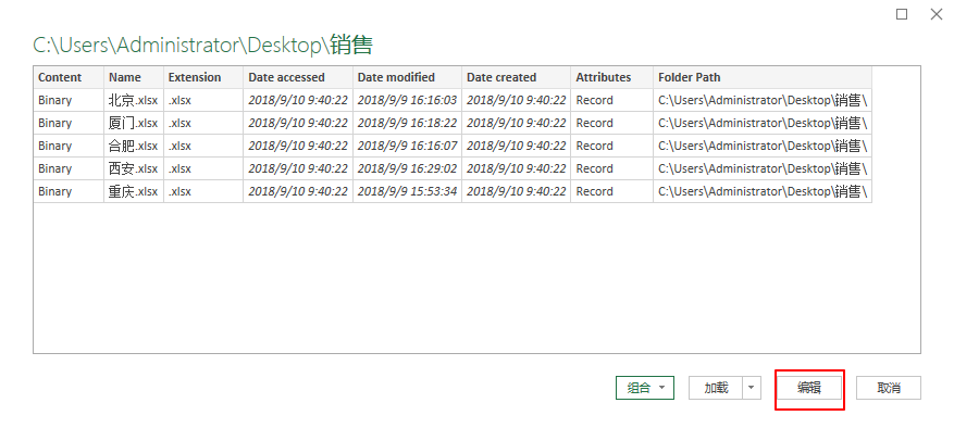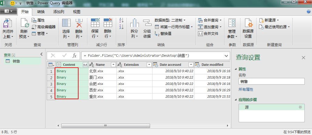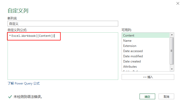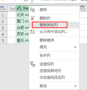 自定义列窗口的列公式下输入=Excel.Workbook([Content])点击确定。4.把除【Name】和【自定义】两列以外的其他列删除。按住Ctrl选中两列,右键选择删除其他列。